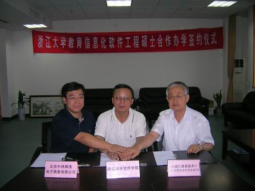 2007年9月7日,浙江大学软件学院与北京中鸿网茂电子商务有限公司、《现代教育技术》杂志社在宁波签订合作办学协议,共同培养教育信息化方向软件工程硕士。浙江大学软件学院(宁波)院长陈德人、北京中鸿网茂电子商务有限公司总经理刘宏图、《现代教育技术》杂志社总编王学优分别代表三方签字。