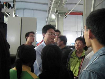 首先,师生兵分两路参观了位于宁波经济技术开发区的两个龙头企业——浙江吉利汽车有限公司和宁波海天集团。浙江吉利汽车有限公司是中国吉利集团投资最大、设备最新、机械化程度最高的汽车制造厂。大家在解说员的带领下,在展示大厅认真听取了吉利的发展历程,并饶有兴趣地参观了吉利豪情、美日、金刚、自由舰、远景等系列车型,接着来到设有冲压、焊装、总装流水线的车间参观吉利汽车的整车制造流程,充分感受到了吉利人“敬业、创新、沟通、拼搏”的企业精神。宁波海天集团——中国最大的塑机生产基地,该集团迄今为止拥有2500名员工和遍及60多个国家的25000多家客户,年销售额已超过20亿。学生们积极地向解说员提问,了解各自专业在实践中的应用情况,从中得到启示。