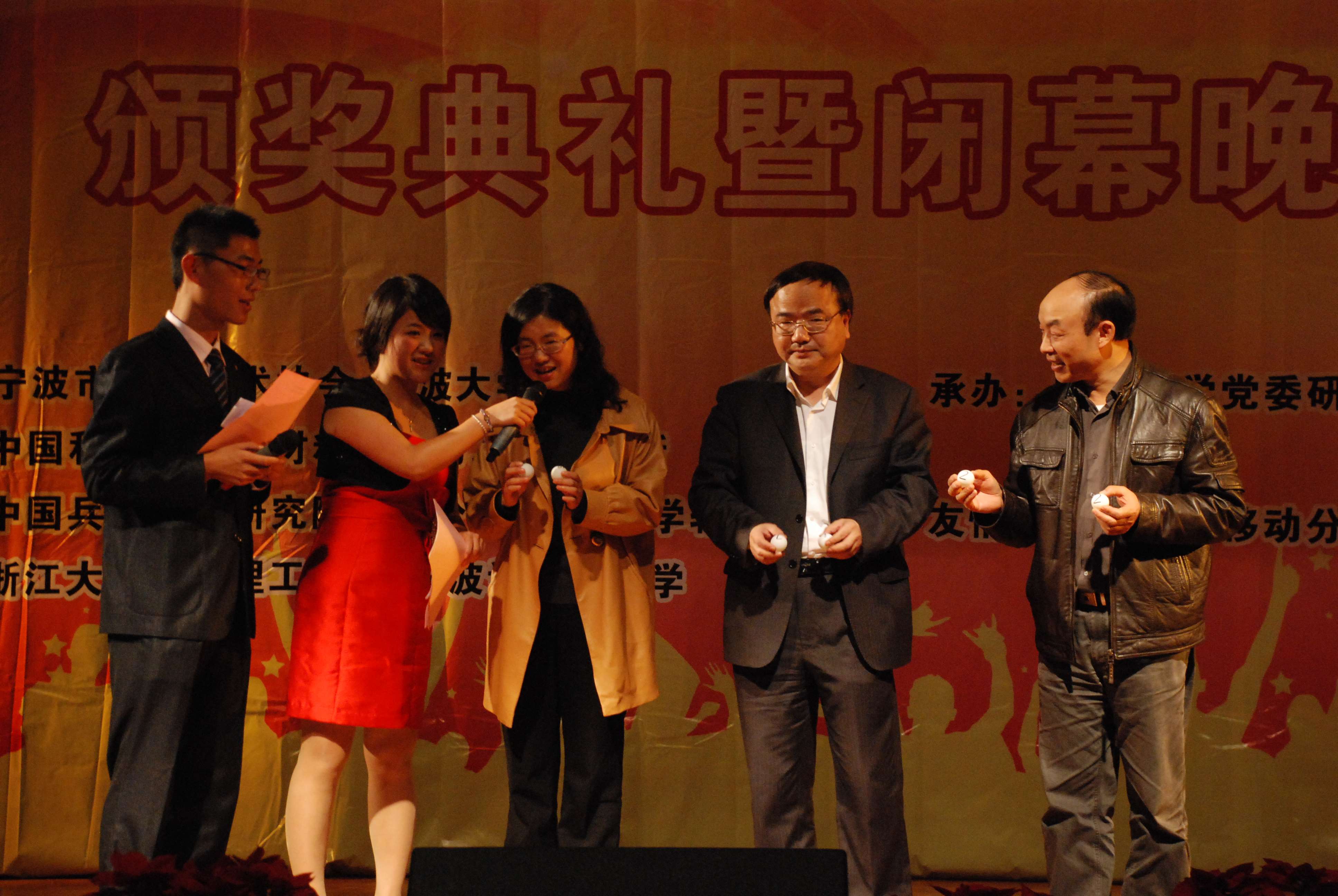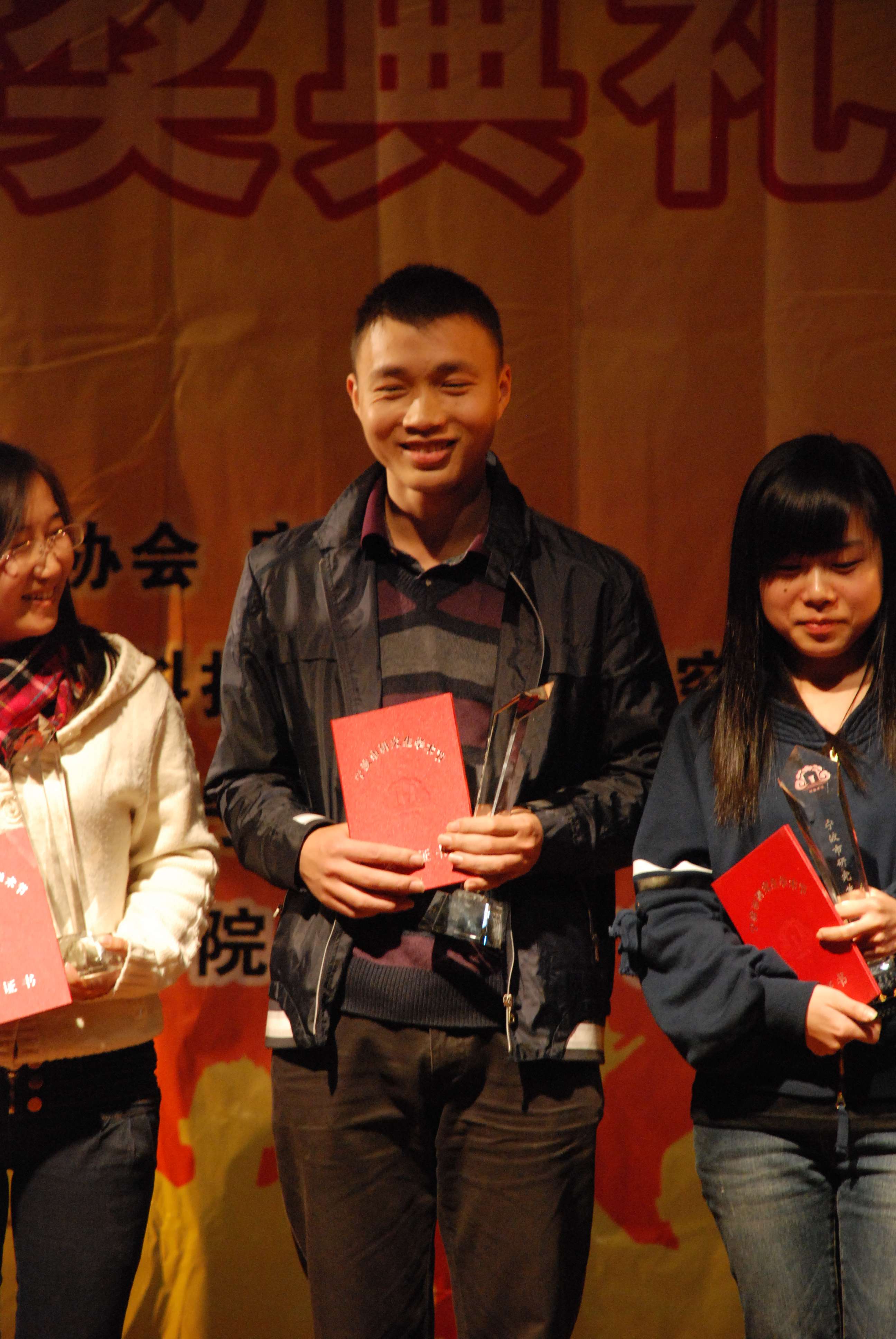 2011年11月14日,2011宁波市研究生学术节大会暨院士报告会、颁奖典礼暨闭幕晚会在宁波大学锦绣小剧场隆重举行。我院软件开发专业刘二腾同学荣获本届学术节金奖及“学术之星”荣誉,软件学院贝毅君老师荣获本届学术节“最佳指导教师奖”。软件学院党委副书记姚青老师及合作办史亚芬老师作为嘉宾出席本次活动,并为荣获奖励的同学颁奖。