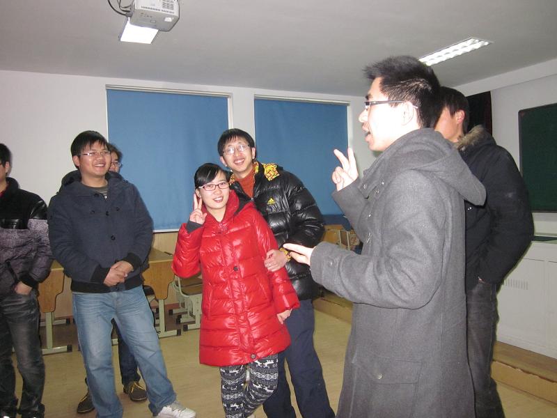 游戏过后,为了进一步了解同学们的学习生活,由两个班的班长带头,为我们展示了他们的理想。在我们这群研究生看来,他们的理想非常的朴实。也正是他们朴实单纯的理想感动了我们,给此行增加了靓丽的一笔。