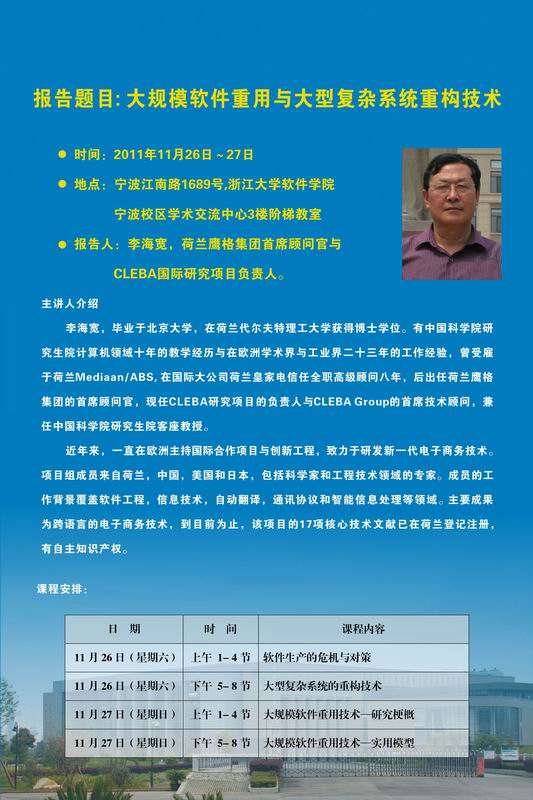关于《大规模软件重用与大型复杂系统重构技术》讲座的通知