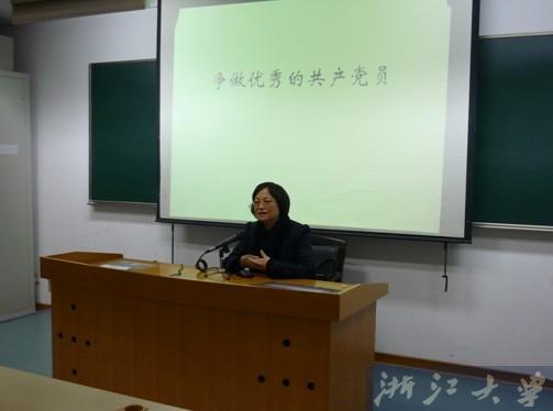 2012年12月6日晚,浙江大学软件学院在教学楼N208举办了《争做优秀的共产党员》党课学习,共46名学生入党积极分子及预备党员参加了党课学习。党课由浙江大学计算机学院和软件学院党委书记冯雁老师主讲,软件学院研工办主任兼团委书记高峰老师主持。