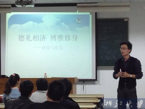为提高学生综合素质,2013年4月14日晚6:30,软件学院特邀浙江大学公共管理学院卓亨逵老师在教学楼N206教室开展了题为《德礼相济、博雅修身——生活中的“前后左右”》的礼仪培训讲座。