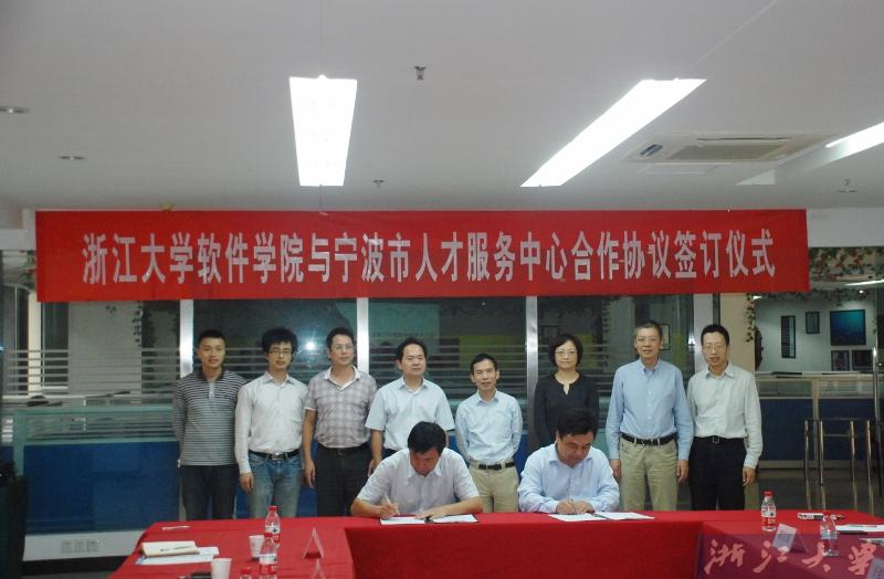 2013年10月11日下午,宁波市人才服务中心与浙江大学软件学院合作签约仪式在我院S317会议室成功举行。出席本次签约仪式的有宁波市人社局副局长陈水良、宁波市人才服务中心主任钱义林、副主任张云建、信息部副部长石浩波等;浙江大学软件学院方面参加本次签约仪式的有浙江大学计算机与软件学院党委书记冯雁、浙江大学软件学院常务副院长杨小虎、副院长干红华、副院长卜佳俊以及合作办相关老师。会议由浙江大学计算机与软件学院党委副书记胡昱东主持。