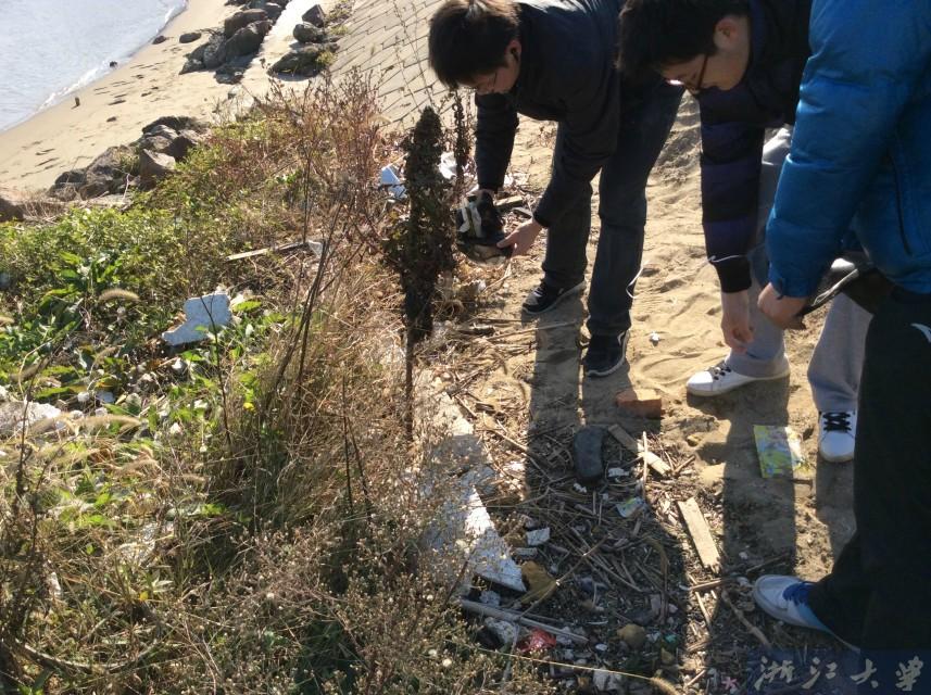 然后我们到了甬江入海口附近的海湾取水,水质特别浑浊,而且特别黄。