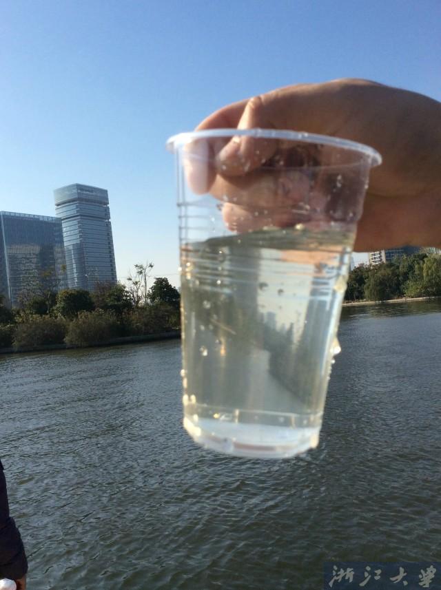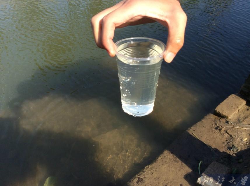 取水进行观察,结论是甬江的水特别浑浊,泥沙比较多