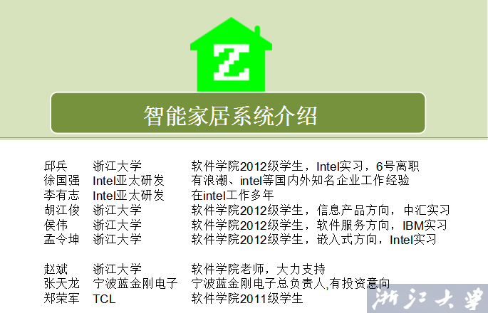 5、2012级嵌入式方向邱兵同学组建的团队主要侧重于开发智能家居系统,详细解释了若干相关技术,分析了项目的可行性。