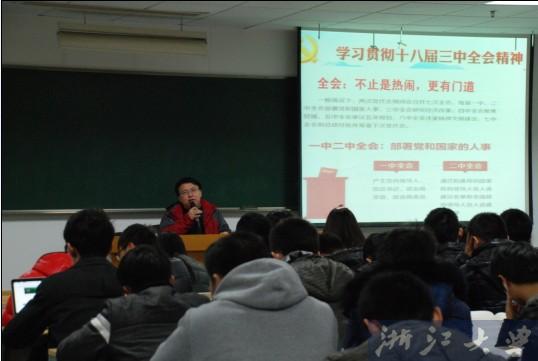 为深入学习十八届三中全会精神,12月18日晚,浙江大学公共管理学院党委书记沈文华老师应邀作了题为《学习宣传党的十八届三中全会精神》专题报告,软件学院教工支部与学生支部共计200多名师生党员参加了报告会。