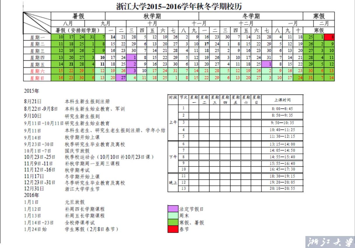 浙江大学2015—2016学年校历