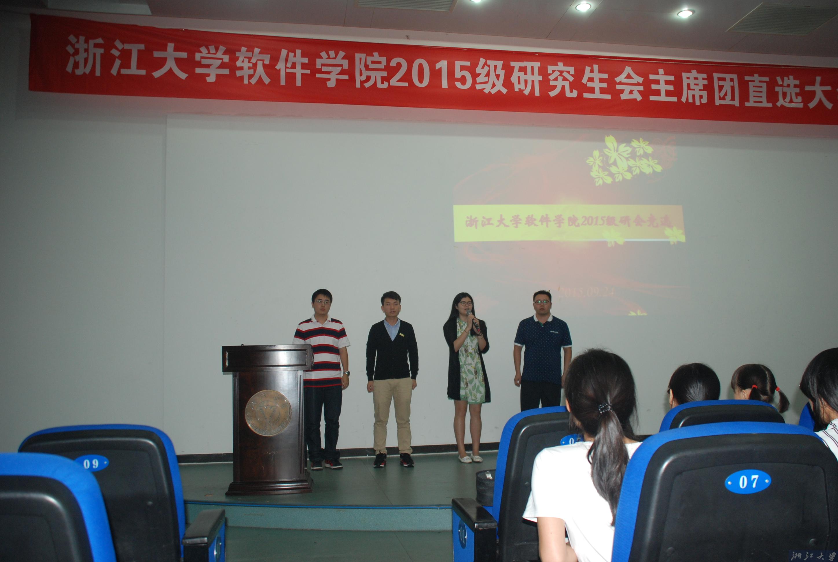 2015年9月24日晚,浙江大学软件学院2015级研究生主席团成员直选大会在学院教学楼N314隆重举行。学院党委副书记胡昱东老师,研工办陈颖老师、胡高权老师、欧阳润清老师及2015级研究生新生出席大会。