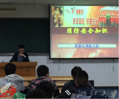 为了提高同学们的防火减灾安全意识及消防安全知识普及,2015年10月30日下午1时在N312教室举行软件学院消防知识讲座,本次讲座由学院党委副书记胡昱东老师主持,高新区消防大队宣传干事王俊老师主讲。