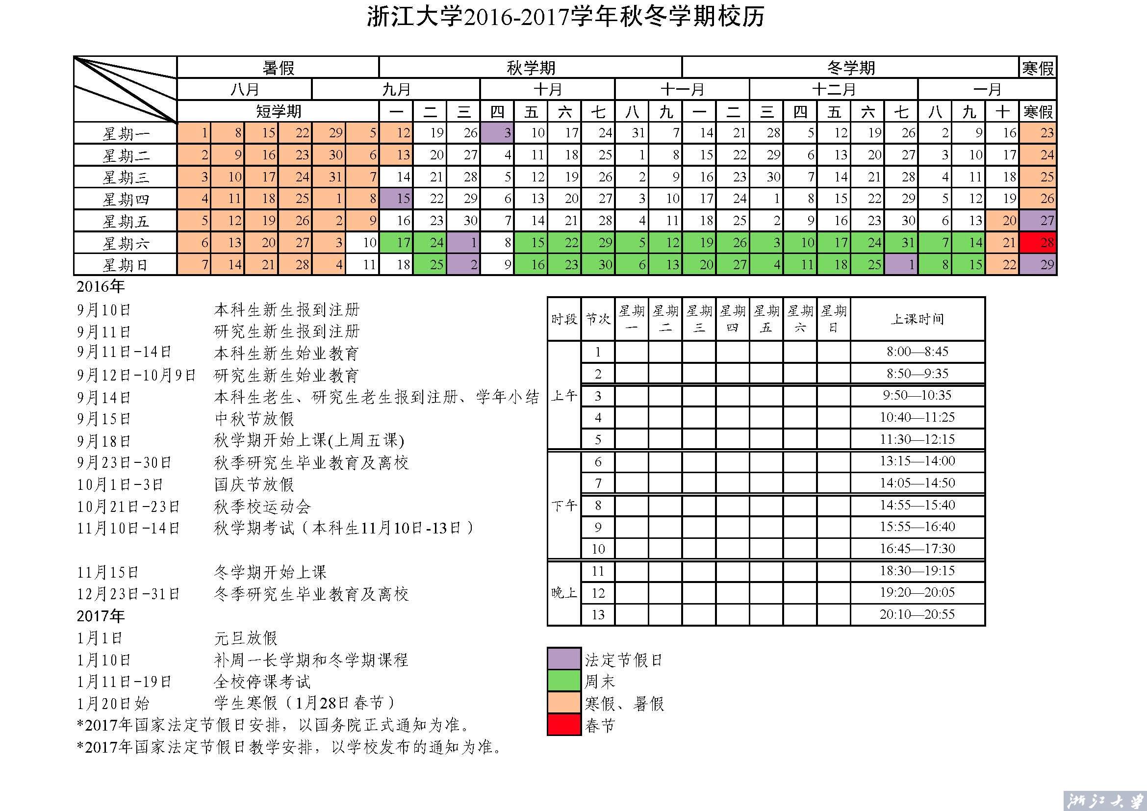 浙江大学2016—2017学年校历