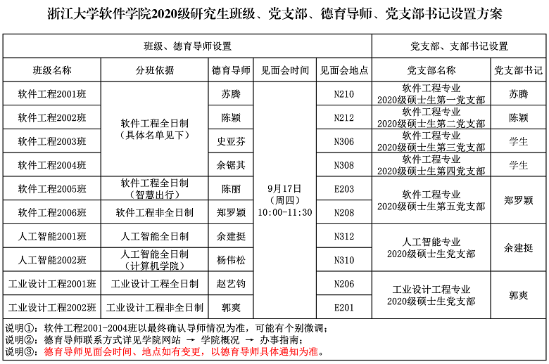 2020级研究生班级、党支部、德育导师、党支部书记设置方案