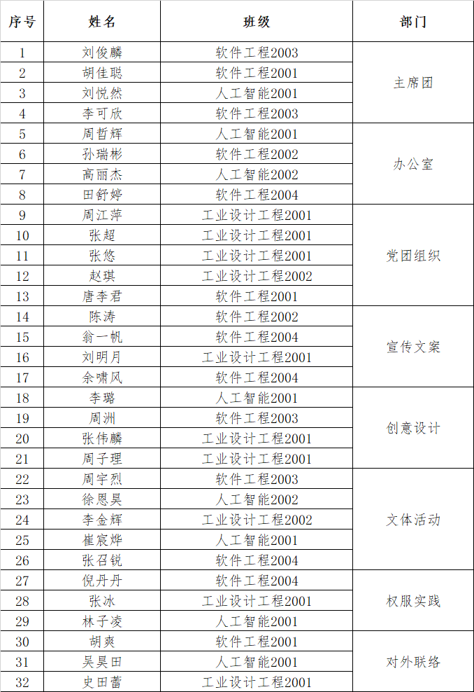 软件学院2020级研究生团学联成员名单