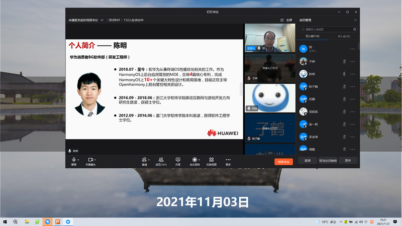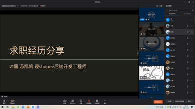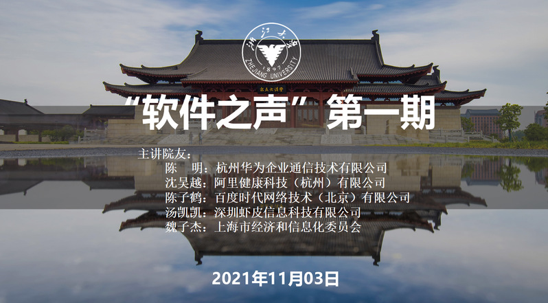 2021年11月03日晚上7:00,软件学院“软件之声”第一期活动在钉钉视频会议上成功举办。来自华为杭研所、阿里健康、百度、shopee、上海市经信委的5位院友在线上做了主题分享,学院300多名在校研究生参加。