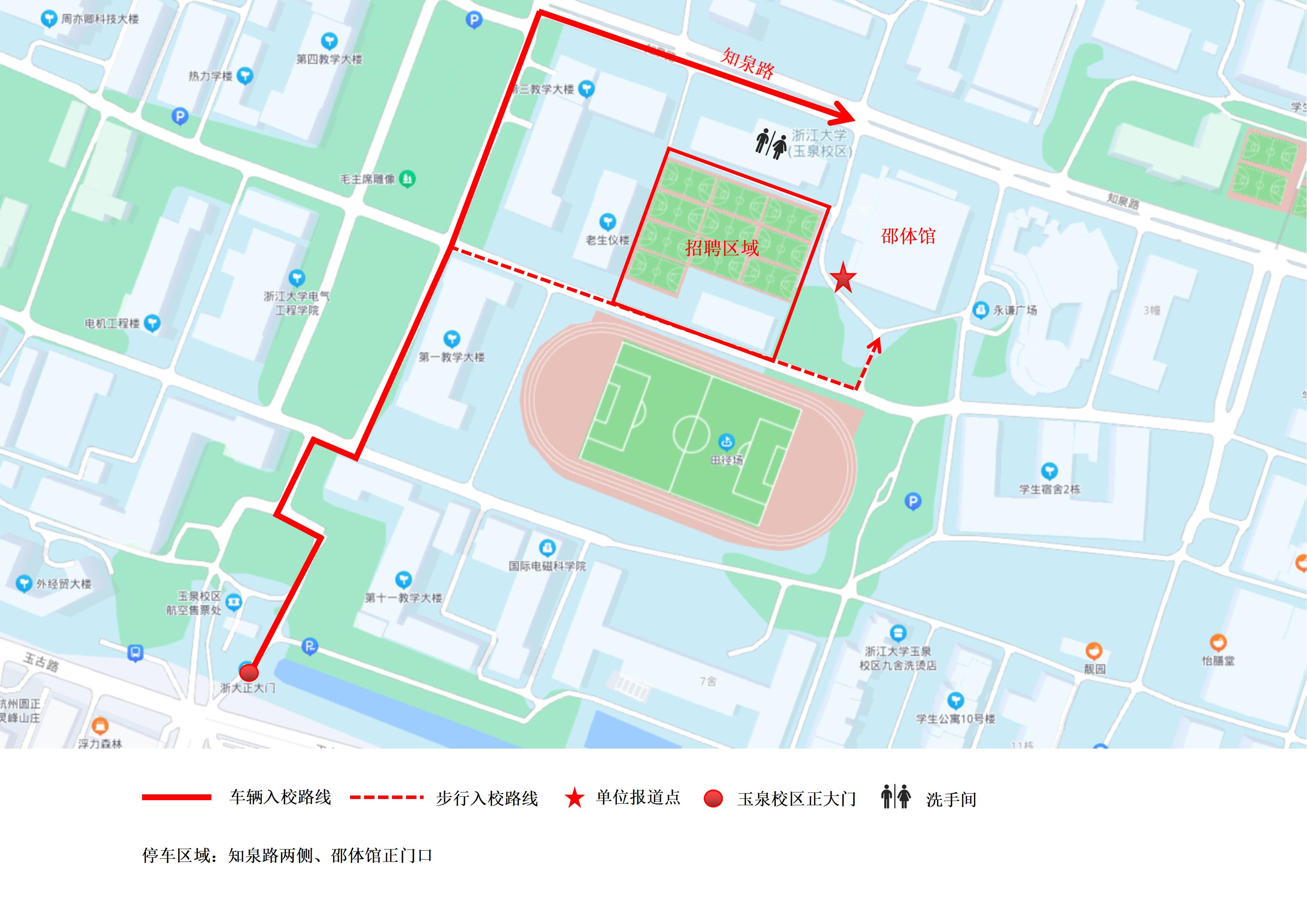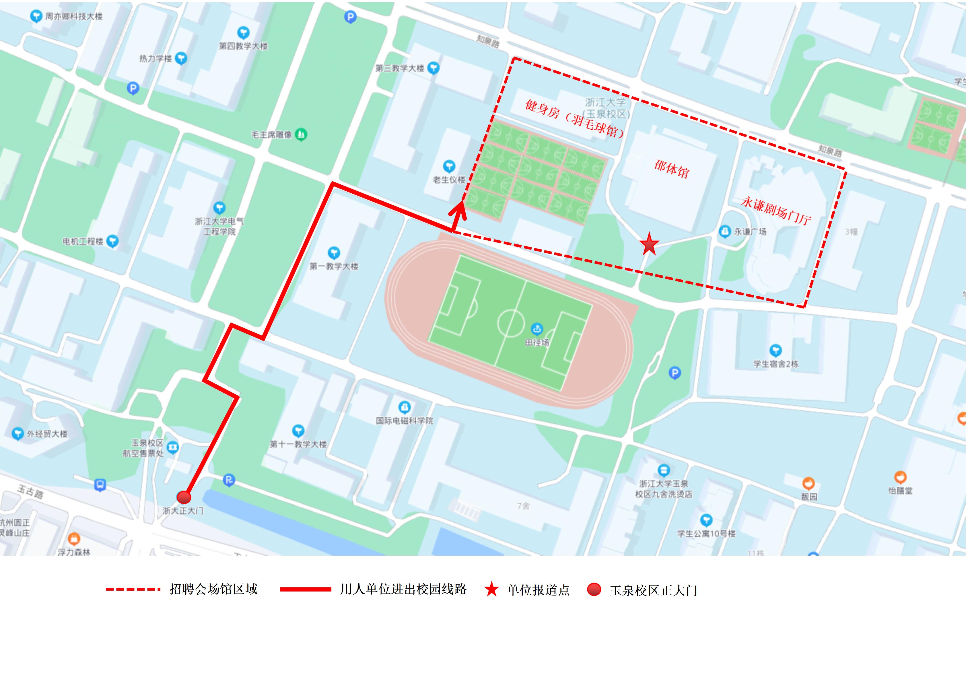 1.进校时间12:30-14:00(不提前进校),请务必从玉泉校区正大门入校,按照学校提供的地图走用人单位专用通道进入招聘会场(浙大路与玉古路交叉的校门)。地图见附件:地图.jpg