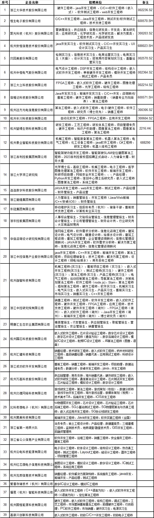 2022年9月27日(周二)下午1:30-4:30,在浙江大学紫金港西区学生服务中心2楼招聘大厅举办“相约在高新”浙江大学2023届毕业生专场招聘会。本次招聘会参会单位50家,邀请吉利控股、大华股份、中国联合工程、聚光科技、浙江大学滨江研究院等知名企业参会,提供用人需求8000多个。
