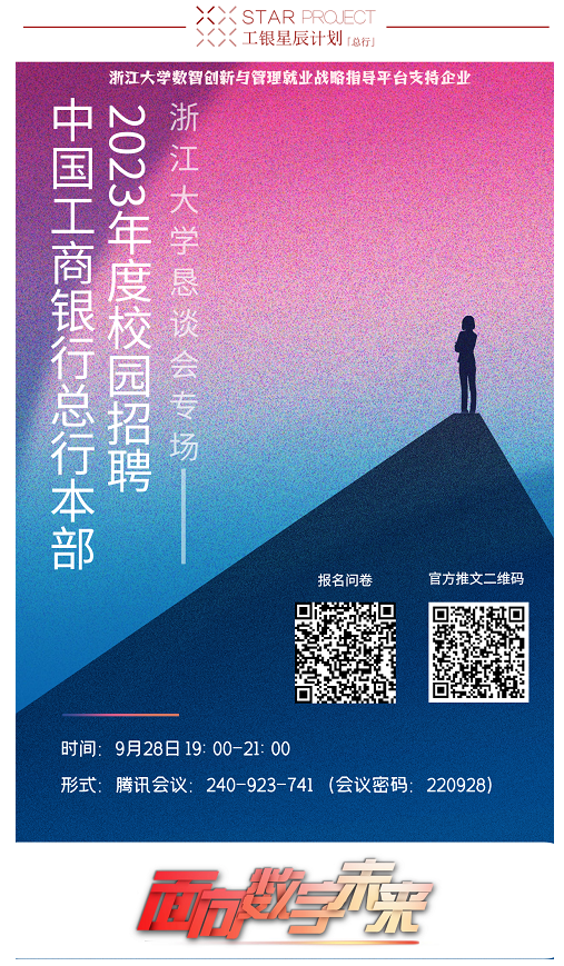 中国工商银行总行本部2023年度校园招聘-浙江大学恳谈会专场来啦!