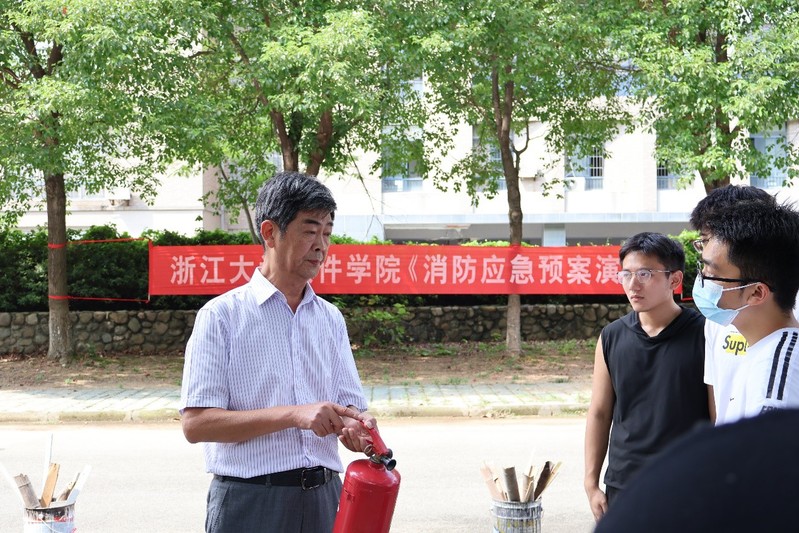 随后,同学们到教学楼东侧空地进行了消防应急预案演练。老师们向参与演练的同学详细介绍了灭火器的应用场景、使用要点及具体操作流程。在场同学进行了灭火场景的实操,提高了火灾应急自救能力。