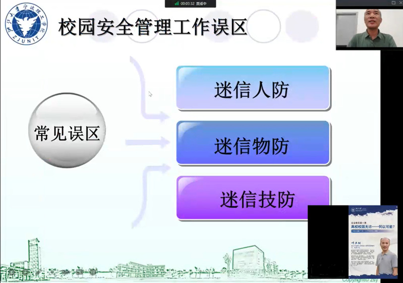 随后,叶处长提醒同学们避免三类对安全的错误认知:迷信人防、迷信物防、迷信技防。叶处长指出在日常的学习生活中,需要保持安全警惕,提高安全意识。