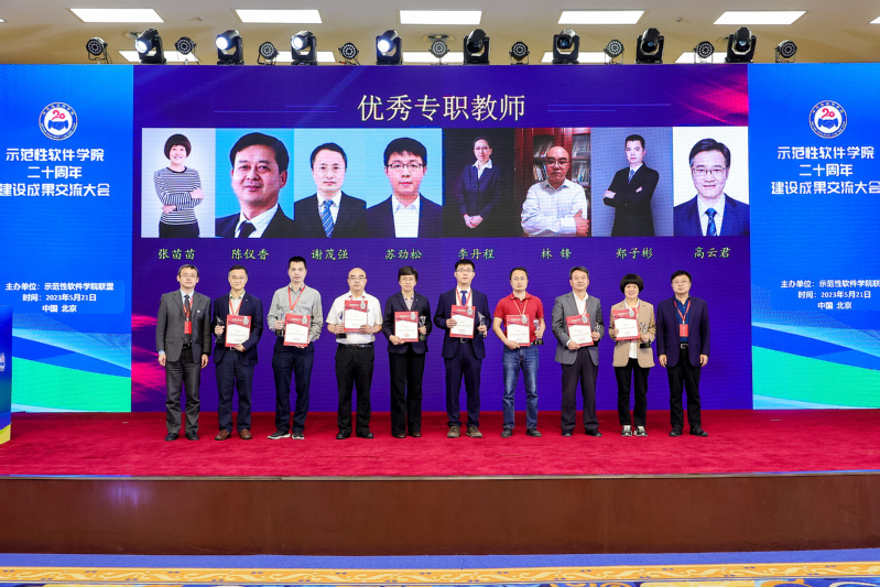 本次交流大会上,对国家示范性软件学院二十年建设与发展过程中做出突出贡献的个人进行了表彰,我院首任院长、中国工程院院士陈纯教授荣获“国家示范性软件学院终身成就奖”,杨小虎教授荣获“国家示范性软件学院卓越成就奖”,何钦铭教授荣获“国家示范性软件学院卓越贡献奖”,高云君教授荣获“国家示范性软件学院优秀专职教师”称号,恒生电子股份有限公司总裁范径武荣获“国家示范性软件学院优秀兼职教师”称号,黄步添荣获“国家示范性软件学院优秀毕业研究生”称号,张利军荣获“国家示范性软件学院优秀本科毕业生”称号。
