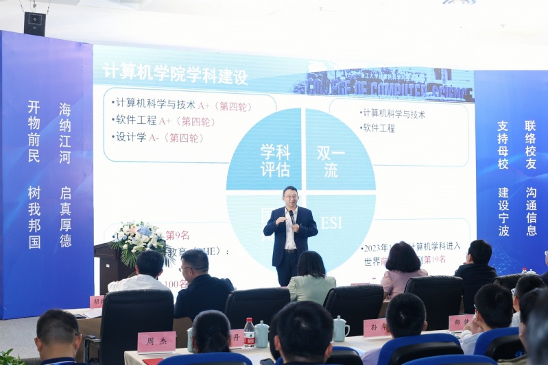 尹建伟院长详细介绍了计算机学院和软件学院发展历程、学科建设情况及此次计算机和软件分会的成立背景。他表示,宁波浙江大学校友会计算机和软件分会的成立意义重大,希望今后分会担起使命责任,弘扬浙大精神,为母校和宁波发展提供强有力的支持。