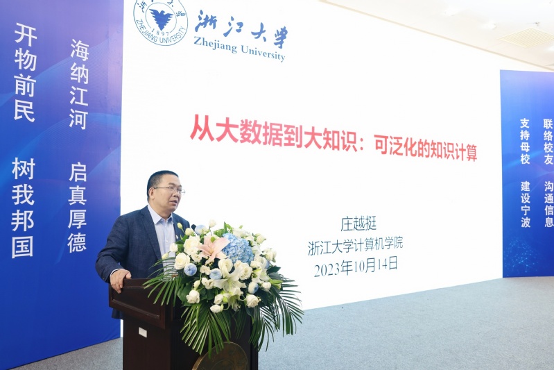 代表大会结束后,浙江大学教育部人工智能协同创新中心主任庄越挺教授深入浅出地分享了《从大数据到大知识:可泛化的知识计算》的专题讲座。