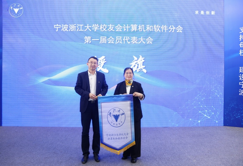 尹建伟院长为宁波浙江大学校友会计算机和软件分会授旗