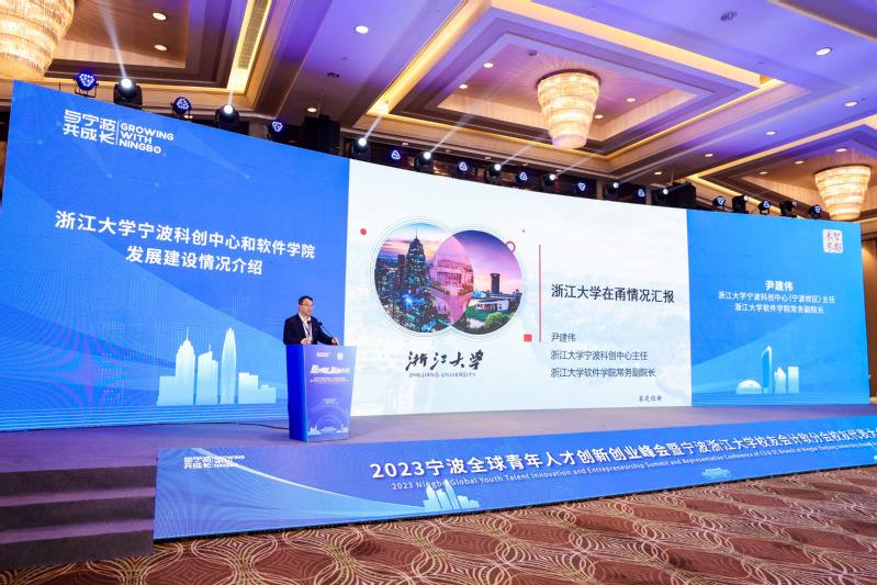 在发展分享环节,浙江大学宁波科创中心(宁波校区)主任、浙江大学软件学院常务副院长尹建伟从发展历史、建设规模、项目优势、人才培养等方面作浙江大学宁波科创中心和软件学院发展建设情况介绍,深度剖析了校地合作的新模式和新思路。