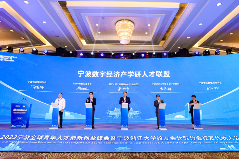 为更好促进人才项目和区域发展的高效对接,充分发挥浙江大学创新创业的引领作用,浙江大学宁波科创中心(宁波校区)、宁波浙大校友会计软分会与三大行业协会共同签订打造宁波数字经济产学研人才联盟。同时,以软件学院为多数的一共8个由国家级专家等领衔的人才项目代表成功签约,产业涉及直播电商、人工智能、数字孪生等重点领域。