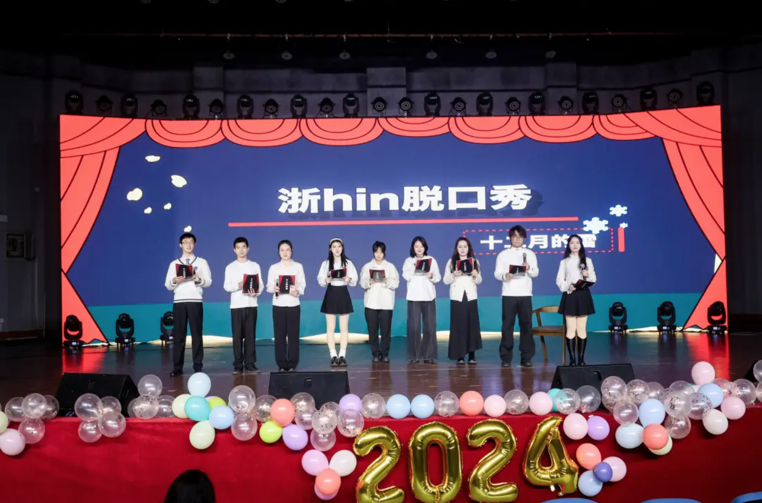 由李泽健、王梦阁、柴一伟、周晓婧、陈心怡、应旺、姚佳怡、王元明、孟辰烨、游嘉翔、高梓昆、易珮琦、侯韶斌、吕珂、高慠带来的《浙hin脱口秀》。脱口秀节目从宁波的学习生活经历展开,现场笑声、掌声和尖叫声不断。