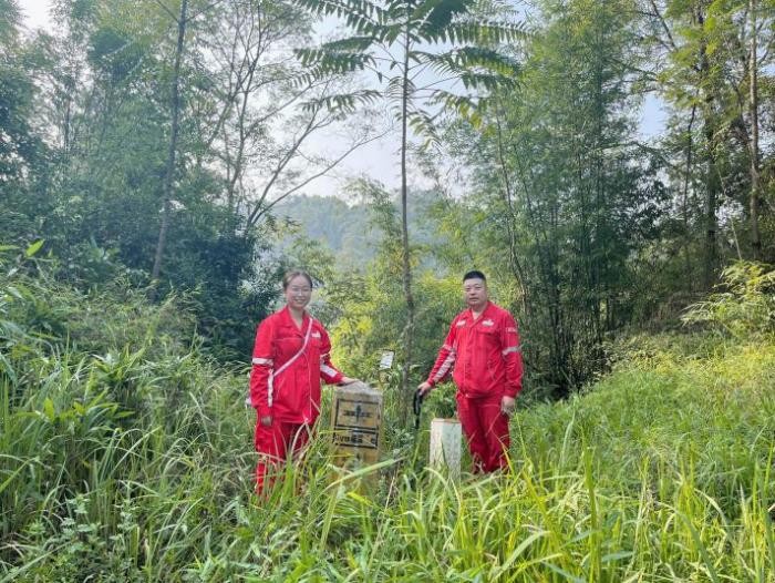 2022年秋,尹萌初到油气生产一线作业区时正直国庆假期,千家万户都沉浸在阖家团聚的氛围之中,享受悠闲愉悦的假期时光。蓝天白云下,青苍两山间,她不惧艰苦、任劳任怨,她肩背水壶、身着红色工装、手持登山杖,穿田间、趟浑水、过密林、登山逾岭,全面排查管道安全运行隐患,检查管道安全范围内有没有机械施工、沿线是否有塌陷、沿途的警示标志有没有被毁坏,并对管道沿途标记点的遮挡杂草进行清理,保证标记点清晰可见。