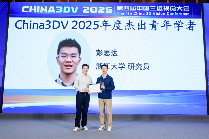 近日,第四届中国三维视觉大会(China3DV 2025)在北京举办,我院彭思达研究员获评China3DV年度杰出青年学者。据悉,大会组委会通过参会者和评委的投票共评选出1名China3DV年度杰出青年学者和2名China3DV年度优秀青年学者,以进一步推动三维视觉领域青年学者的学术交流与创新,为三维视觉领域注入新的活力和创造力。