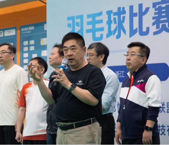 副理事长兼赛事承办方、浙江大学软件学院院长尹建伟代表赛事承办方欢迎各单位的到来,指出学院秉承“求是创新”精神,在培养高素质软件人才、服务国家数字经济发展的征程中砥砺前行。本次球赛不仅是为了切磋球技、强健体魄,更是为了深化友谊、凝聚共识,期望本次赛事成为一次文明、和谐、精彩的盛会。