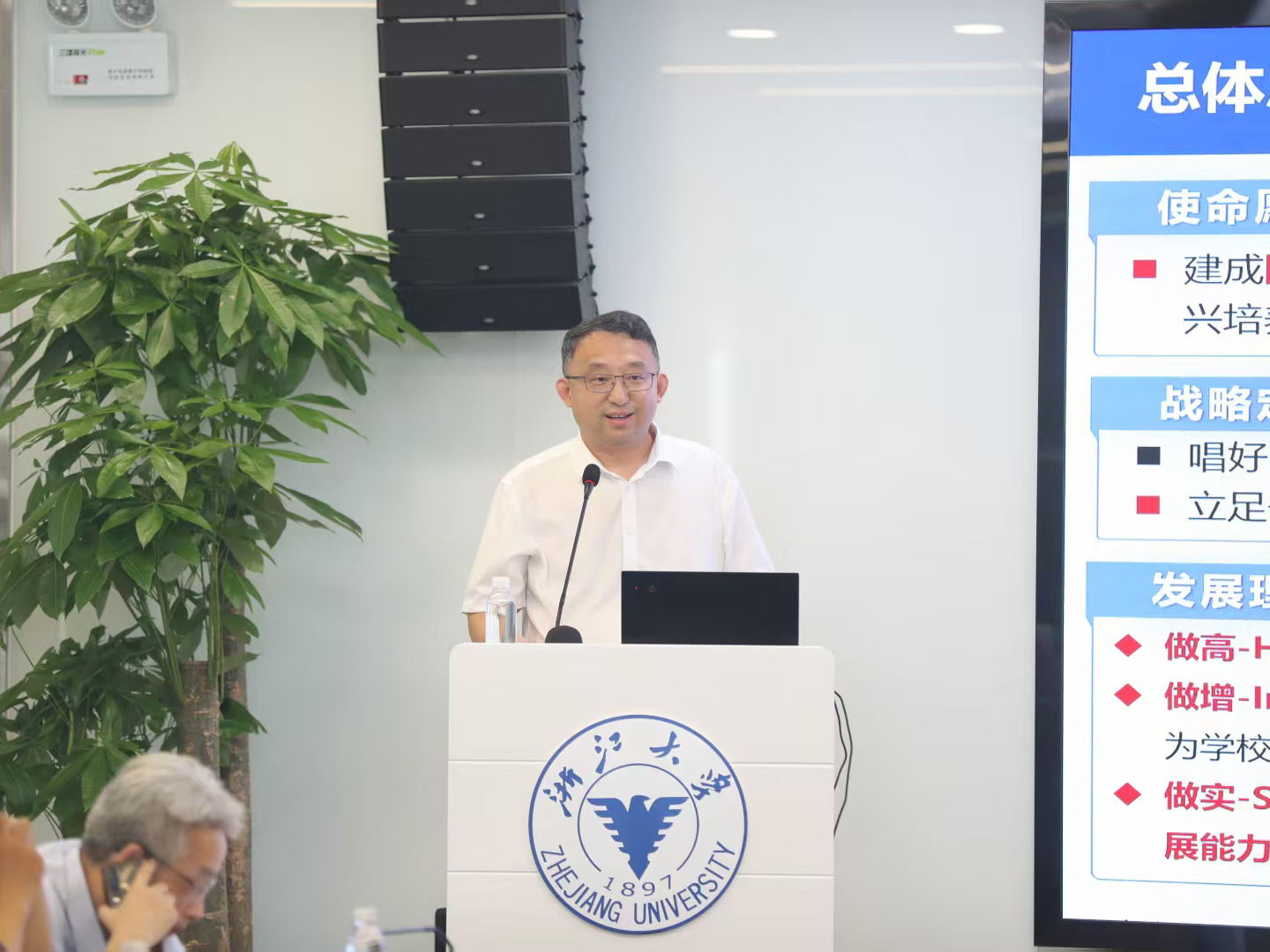 陈刚副校长代表浙江大学讲话,他指出,“一院一中心”是落实市校新一轮战略合作的核心载体,标志着双方合作迈入更高水平新阶段。浙大将发挥学科人才优势,与宁波合力将其打造为支撑共同富裕示范区建设的战略科技力量,恳请专家为方案优化建言,共促项目高质量落地。