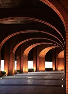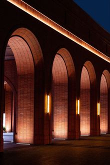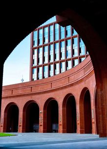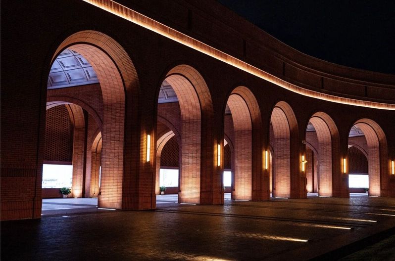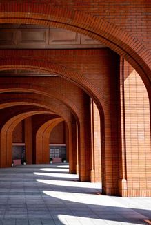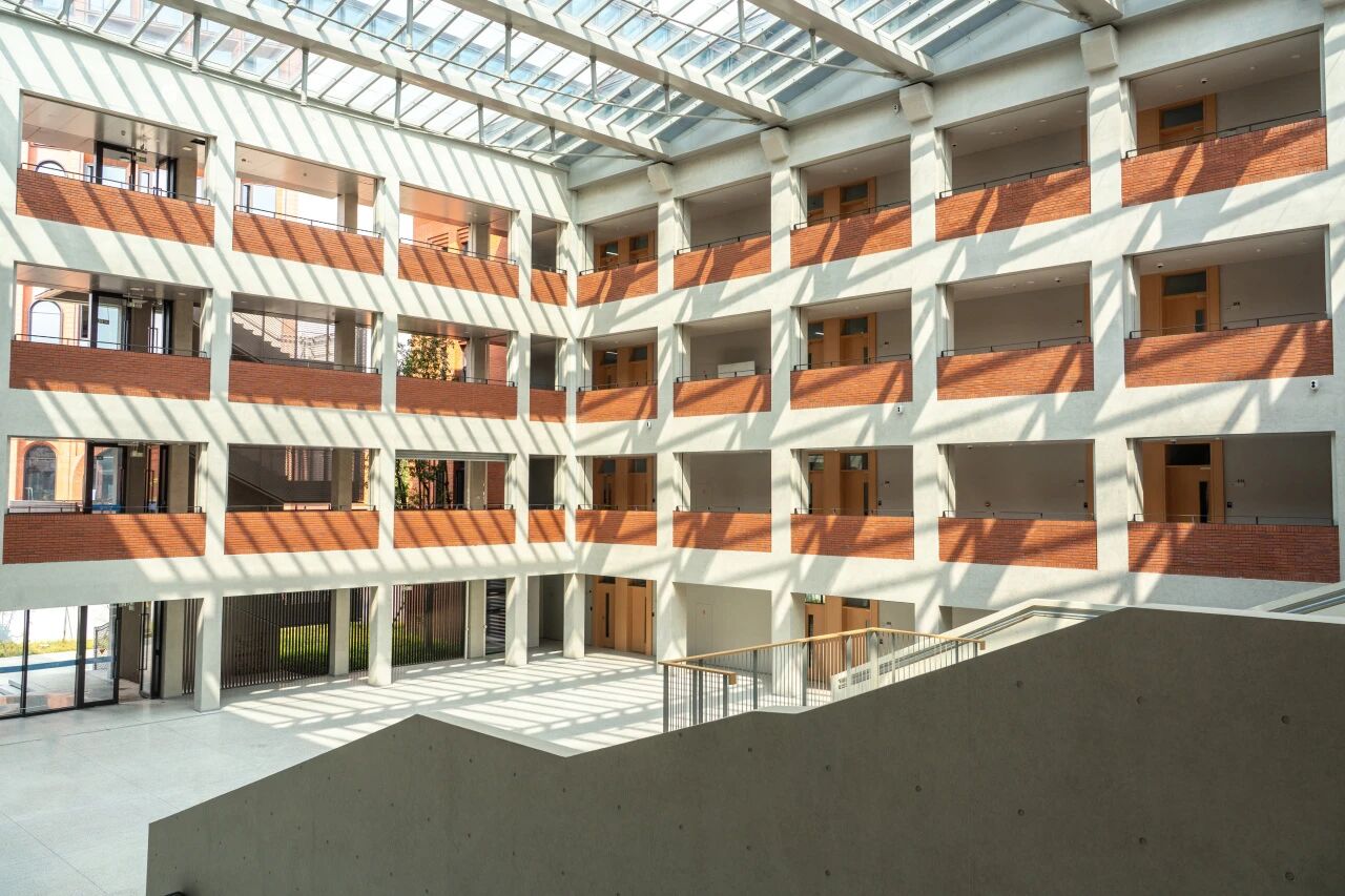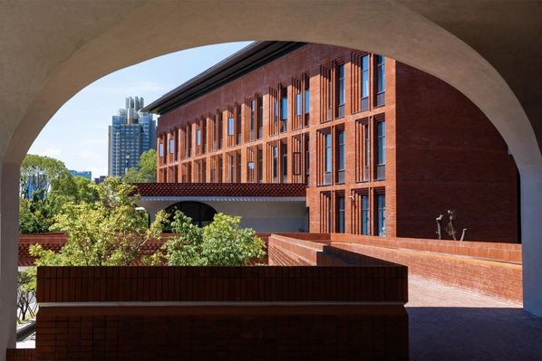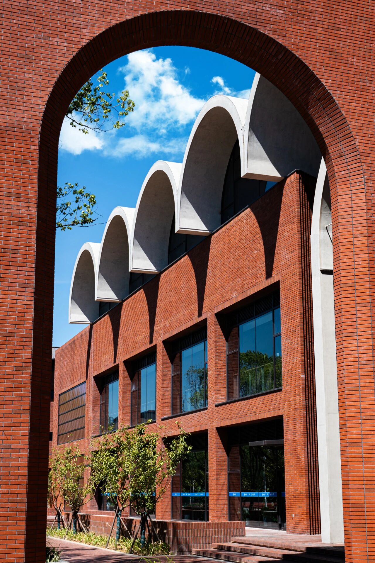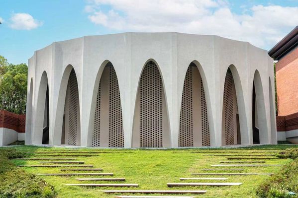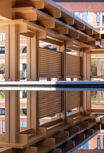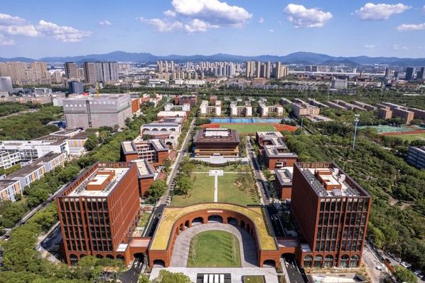 校门,不止是进出的通道,更是一所院校的精神凝练。回溯烽火年代,校门曾守护着求是书院中一点民族文化的星火;而今日,院校与城市早已走向和合共生。园区的西大门,以一道U形券廊,将金黄银杏与青青草坡还予城市,也将街对面的院士公园纳为园区的自然延伸。而环廊间,校史展览将百年根脉与“树我邦国”的担当,轻声诉诸城市的日常。