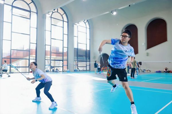 羽毛球和篮球校友友谊赛的赛场上,