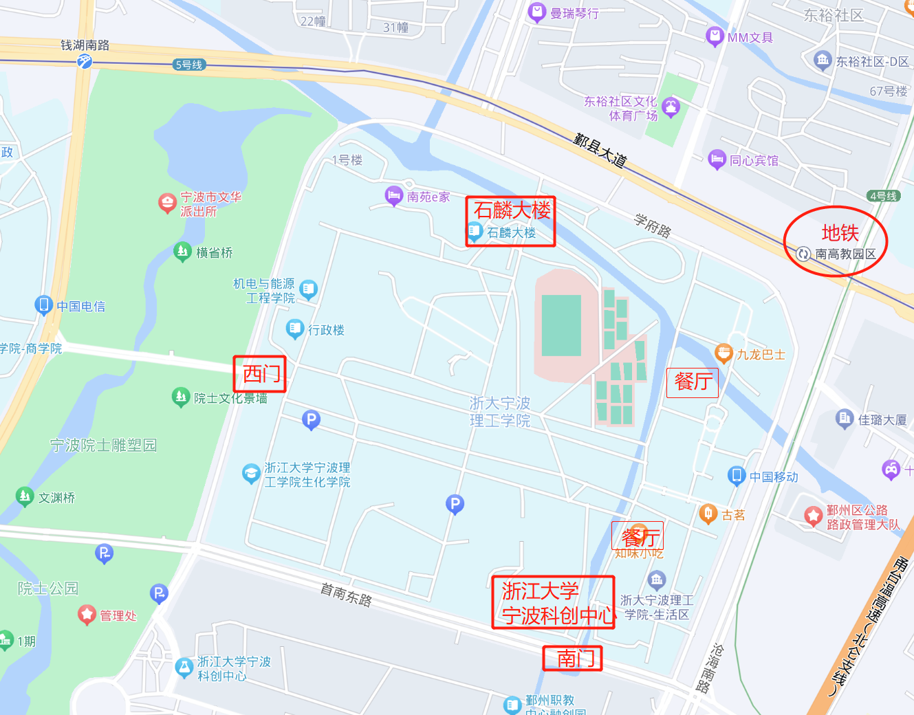 地图.png)。交通指南:轨道交通4号线、5号线【南高教园区】站,公交368路可到达浙大宁波理工学院,宁波交通比较繁忙,车站站点离校内石麟大楼较远,务请计算好路上时间,提前到达。