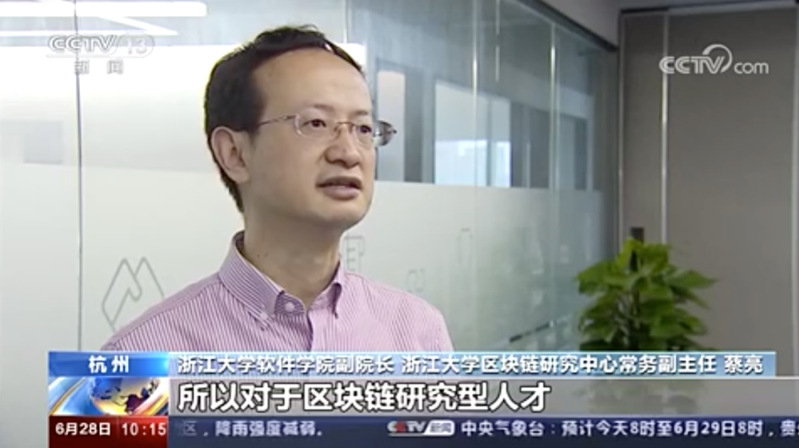 On the morning of June 28th, Cai Liang, Executive Deputy Director of Zhejiang University Blockchain Research Center and Vice Dean of School of Software Technology, Zhejiang University was interviewed by China Central Television (CCTV) News channel. In the interview, Prof. Cai analyzed the needs for blockchain talents in China.